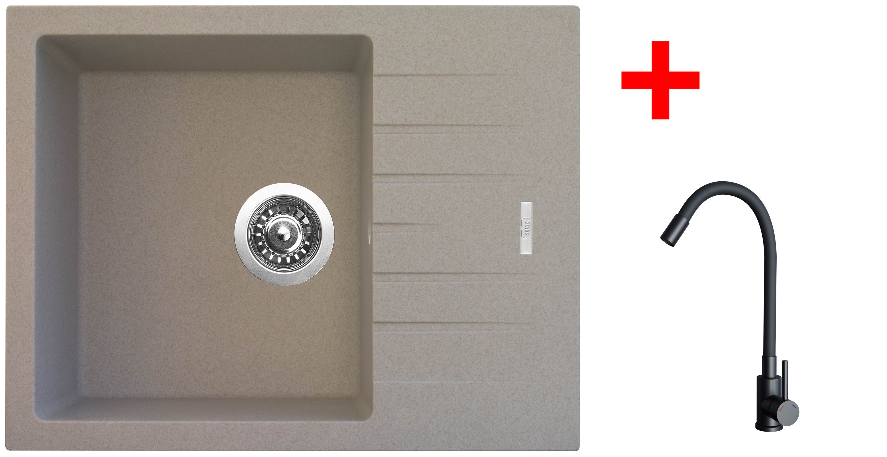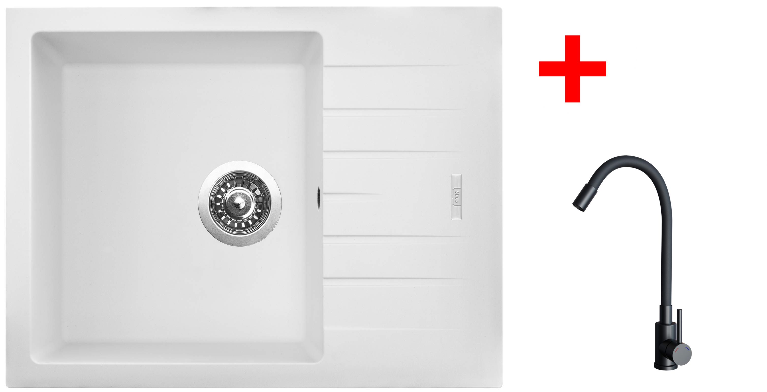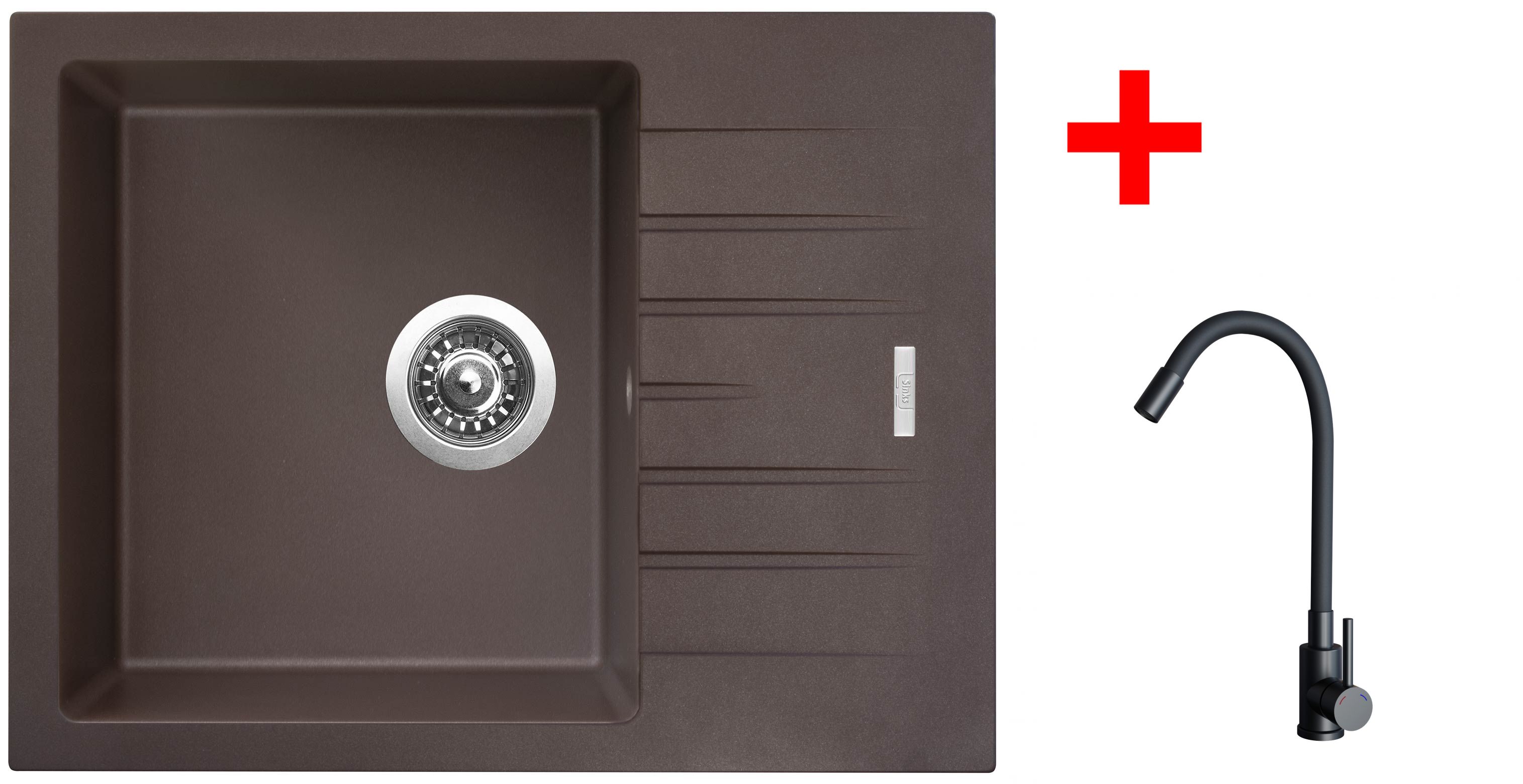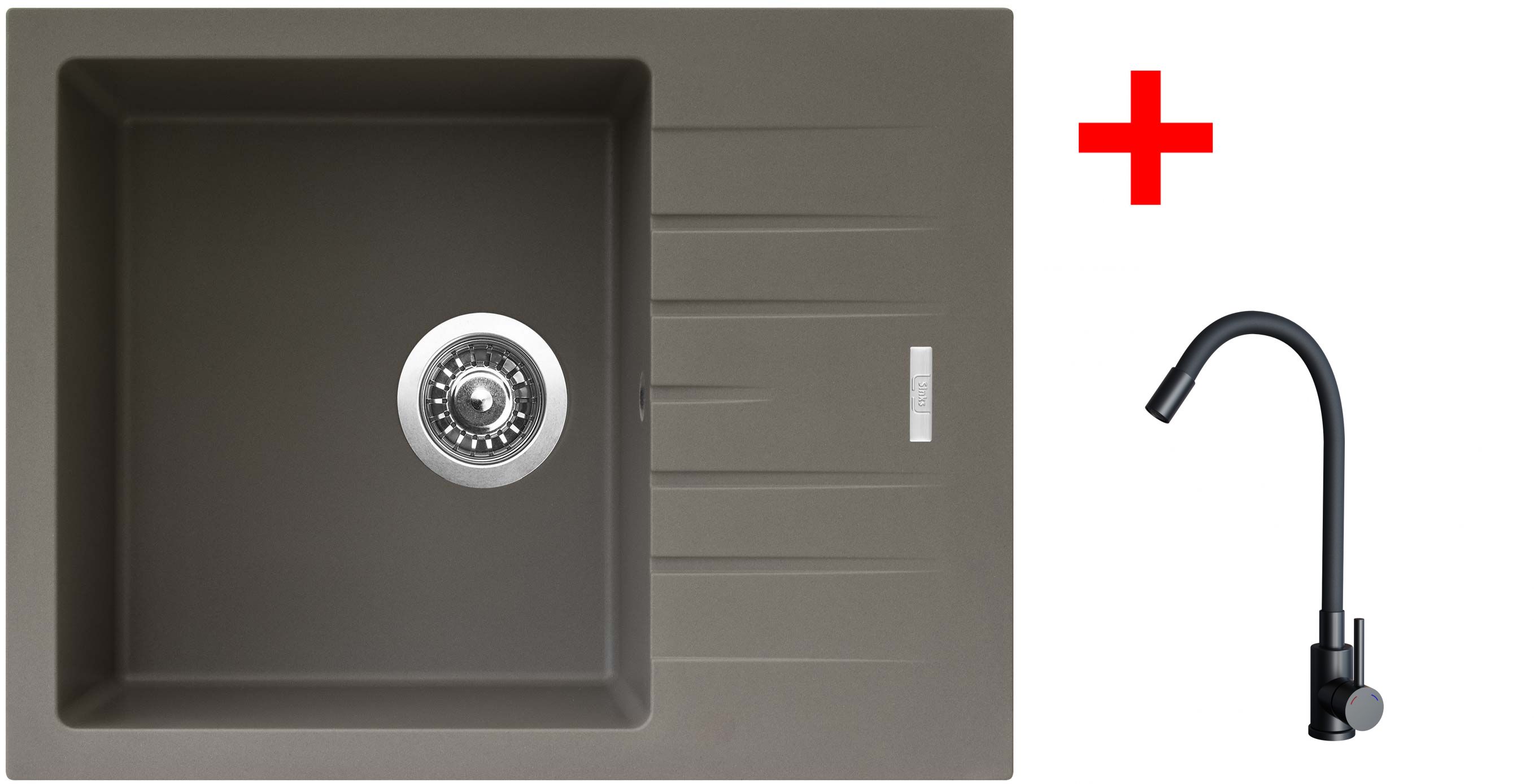 Set obsahuje dřez PERFECTO 650 s odkapem + baterii ELASTA černá matná