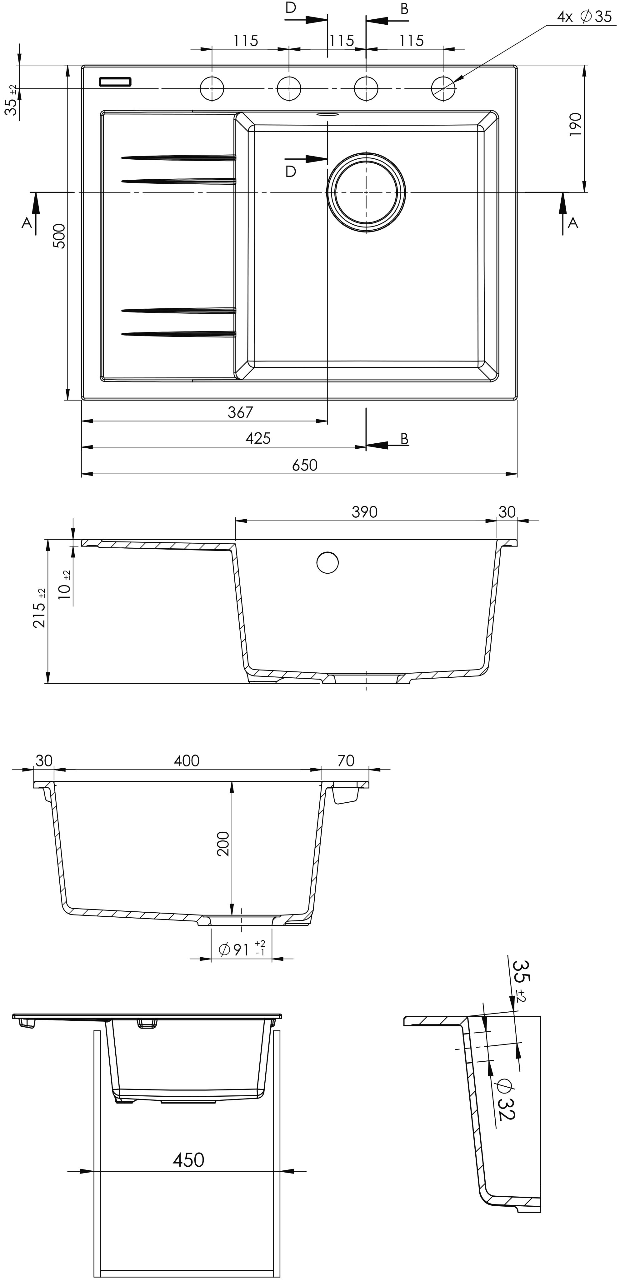 Vnější rozměr dřezu: 650 x 500 mm