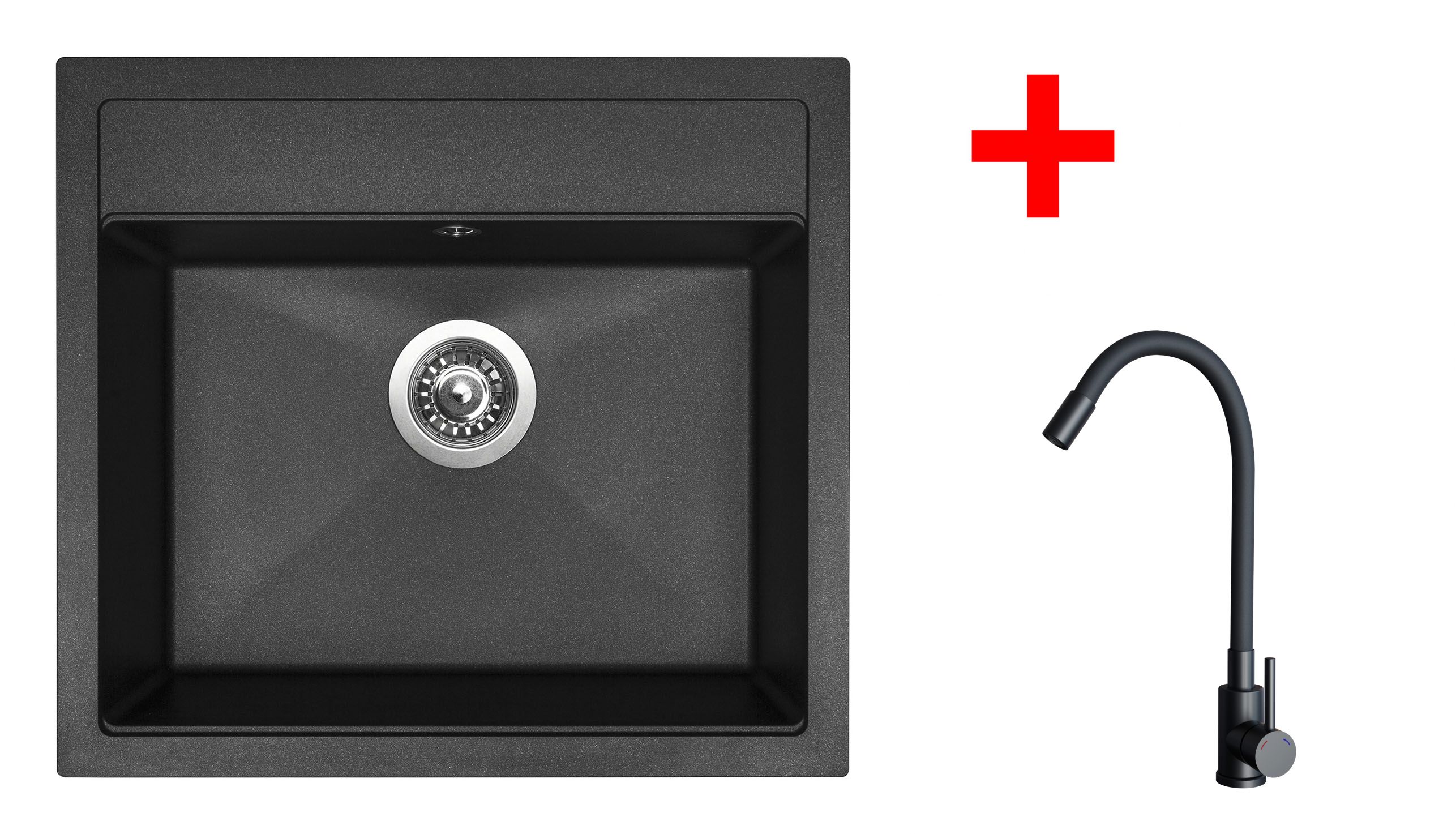 Set obsahuje dřez SOLO 560 + baterii ELASTA černá matná
