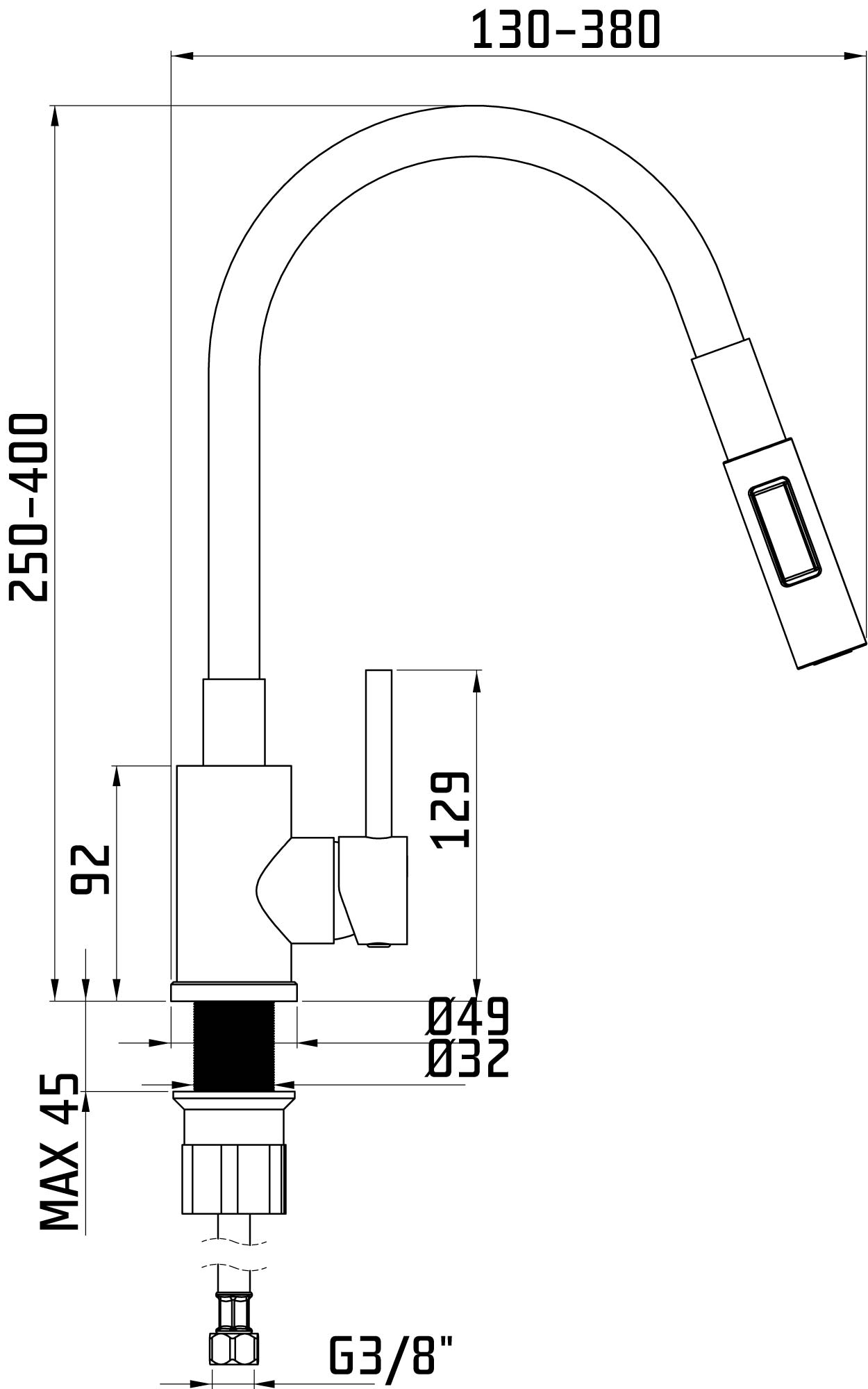 Typ baterie: S flexibilním raménkem s přepínačem na sprchu, vytahovací koncovka