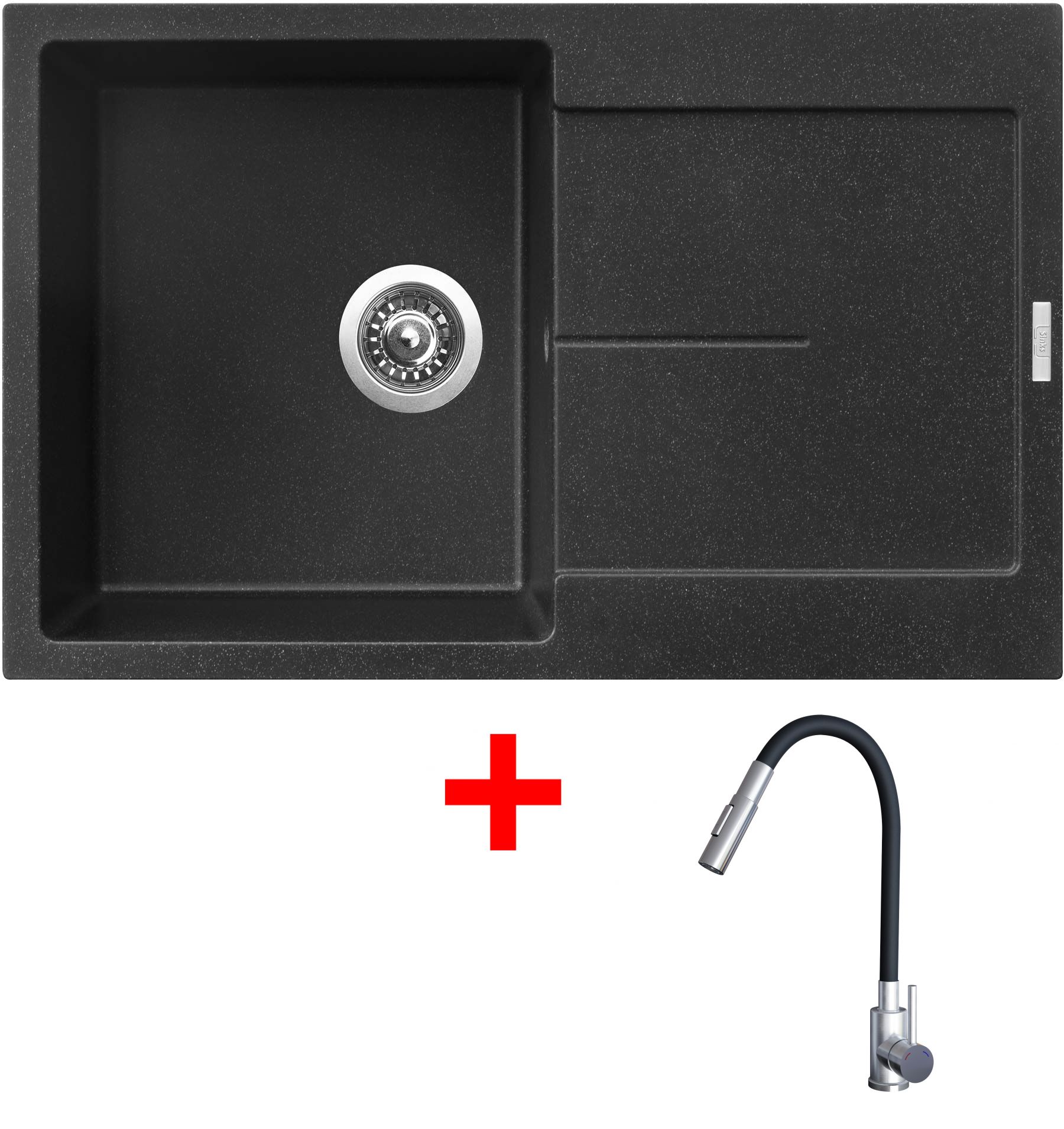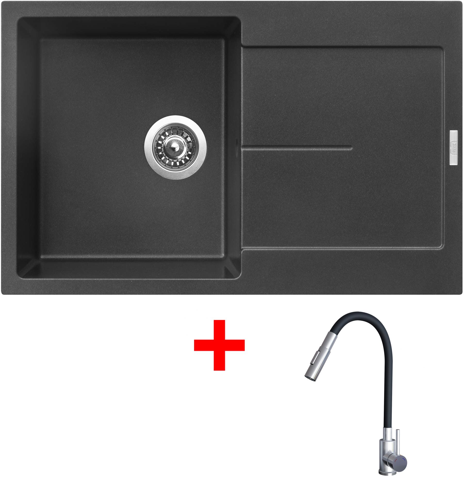 Set obsahuje dřez ULTIMA 790 s odkapem + baterii ELASTA S nerez/černá