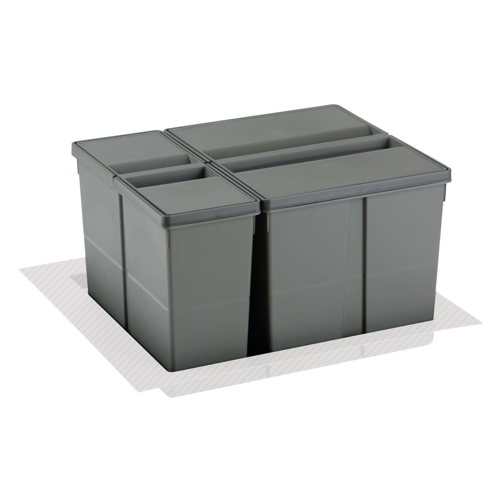 Nádoby odpadkových košů s víky pro vložení do spodních kuchyňských zásuvek.