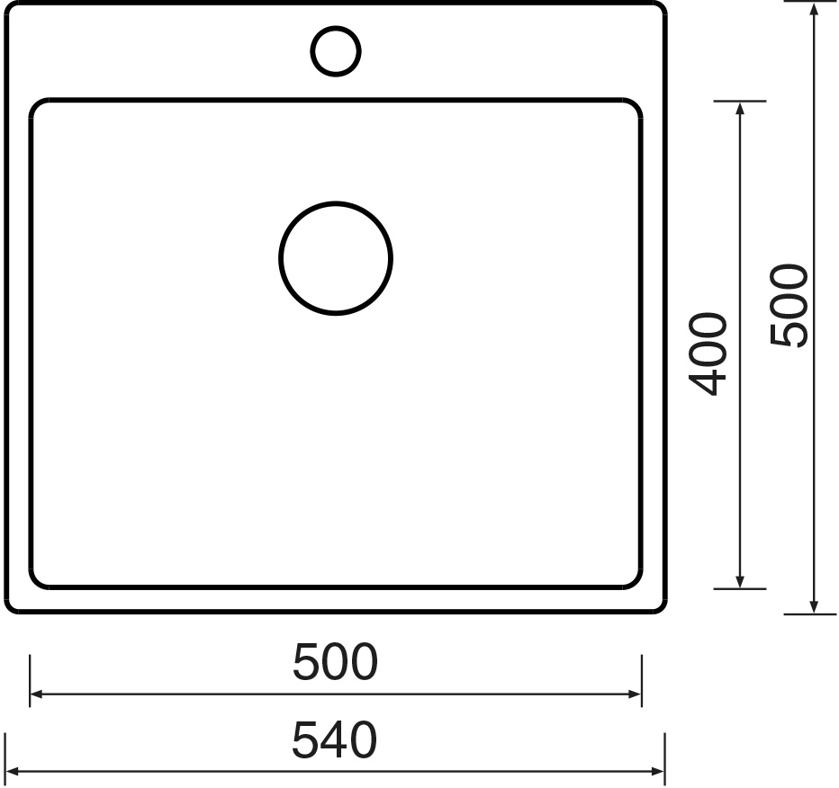 - vnější rozměr dřezu: 550 x 505 mm