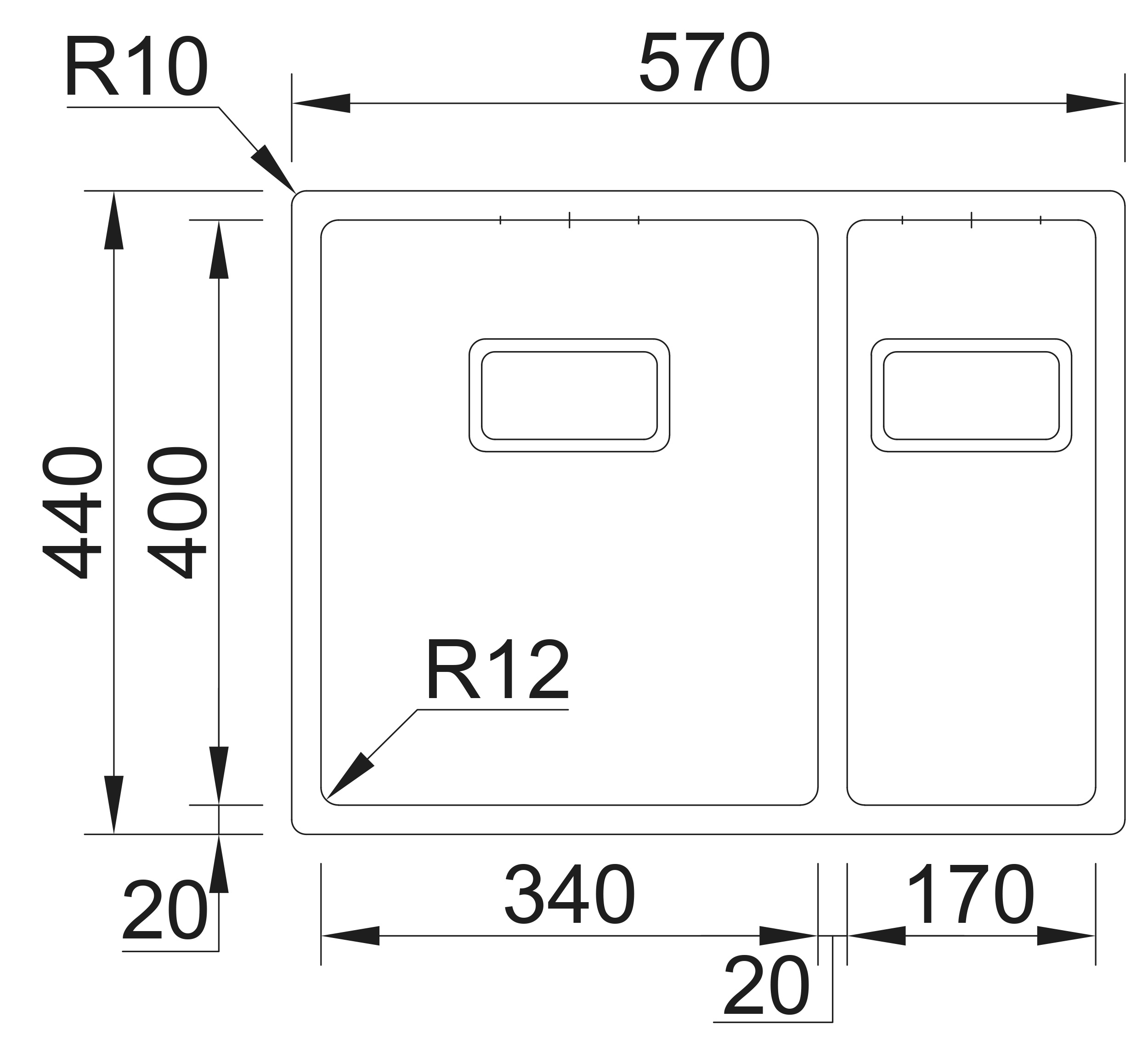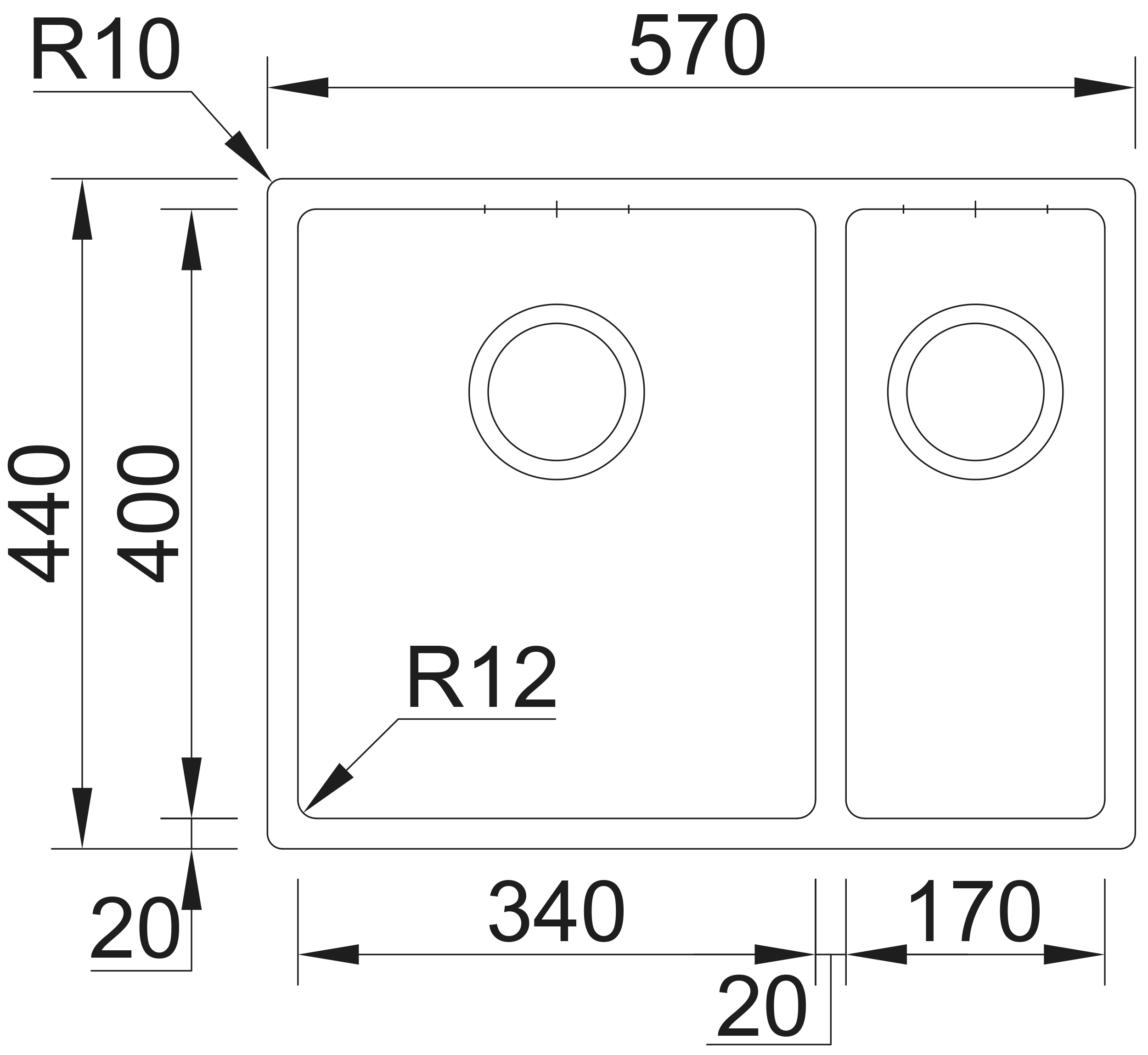 Hloubka dřezu: 200/170 mm