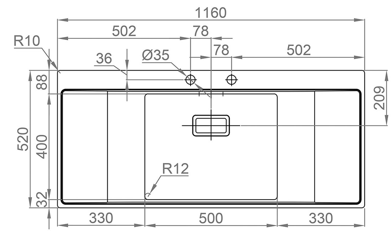 Vnější rozměry: 1160 x 520 mm