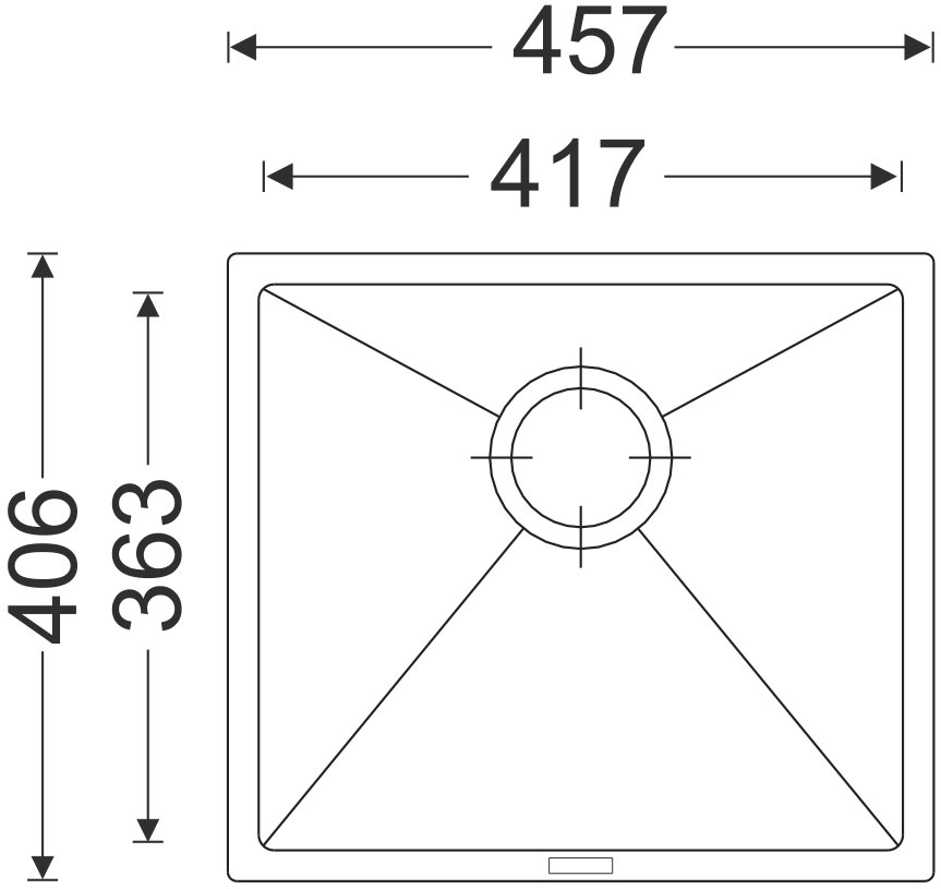- vnější rozměr dřezu: 457 x 406 mm