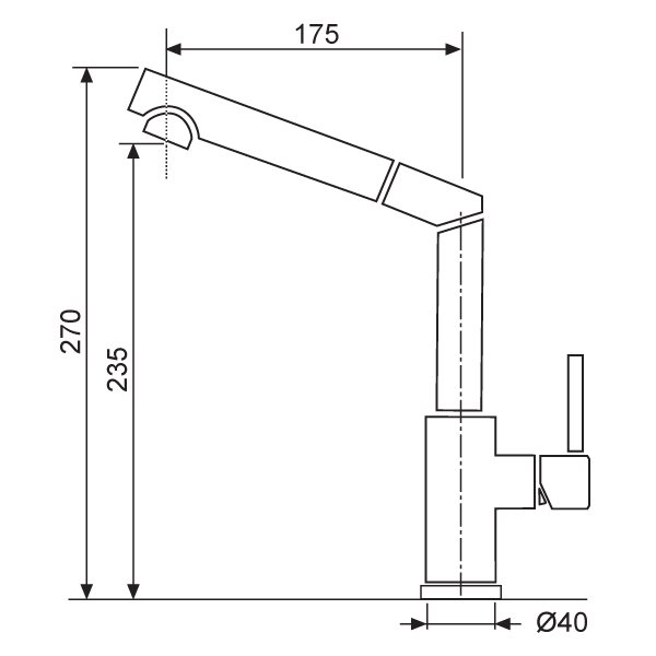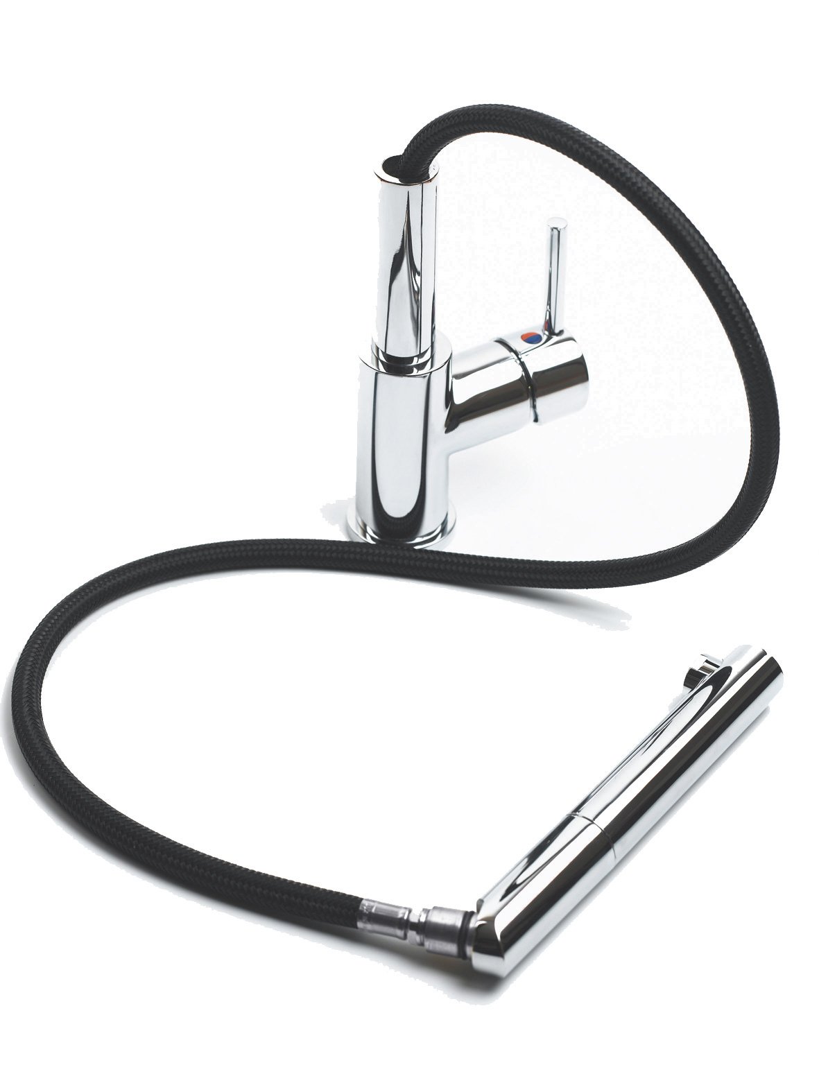 - dřezová stojánková baterie s vytahovací koncovkou s perlátorem, bez přepínače - pouze proud
