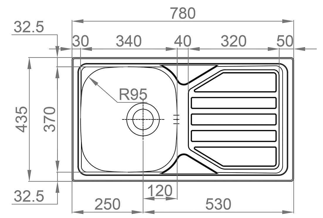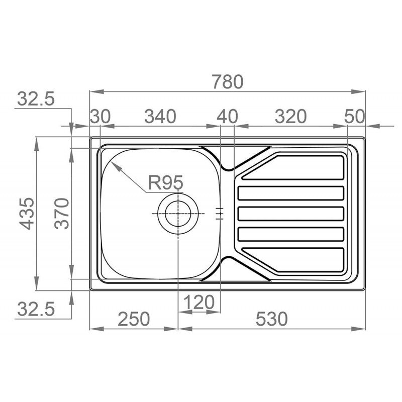 - vnější rozměr dřezu: 780 x 435 mm