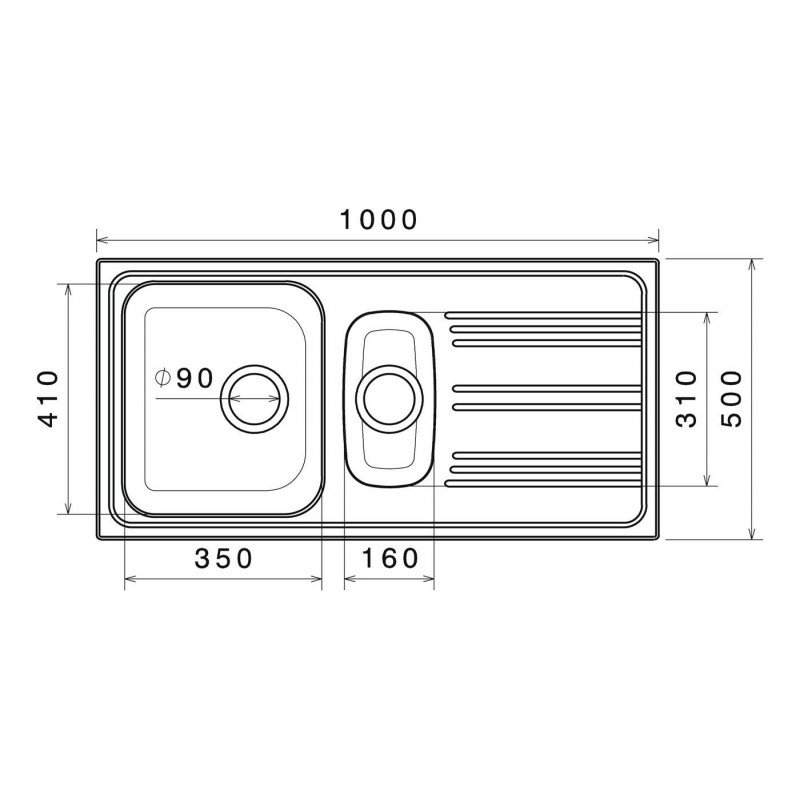 - vnější rozměr dřezu: 1000 x 500 mm
