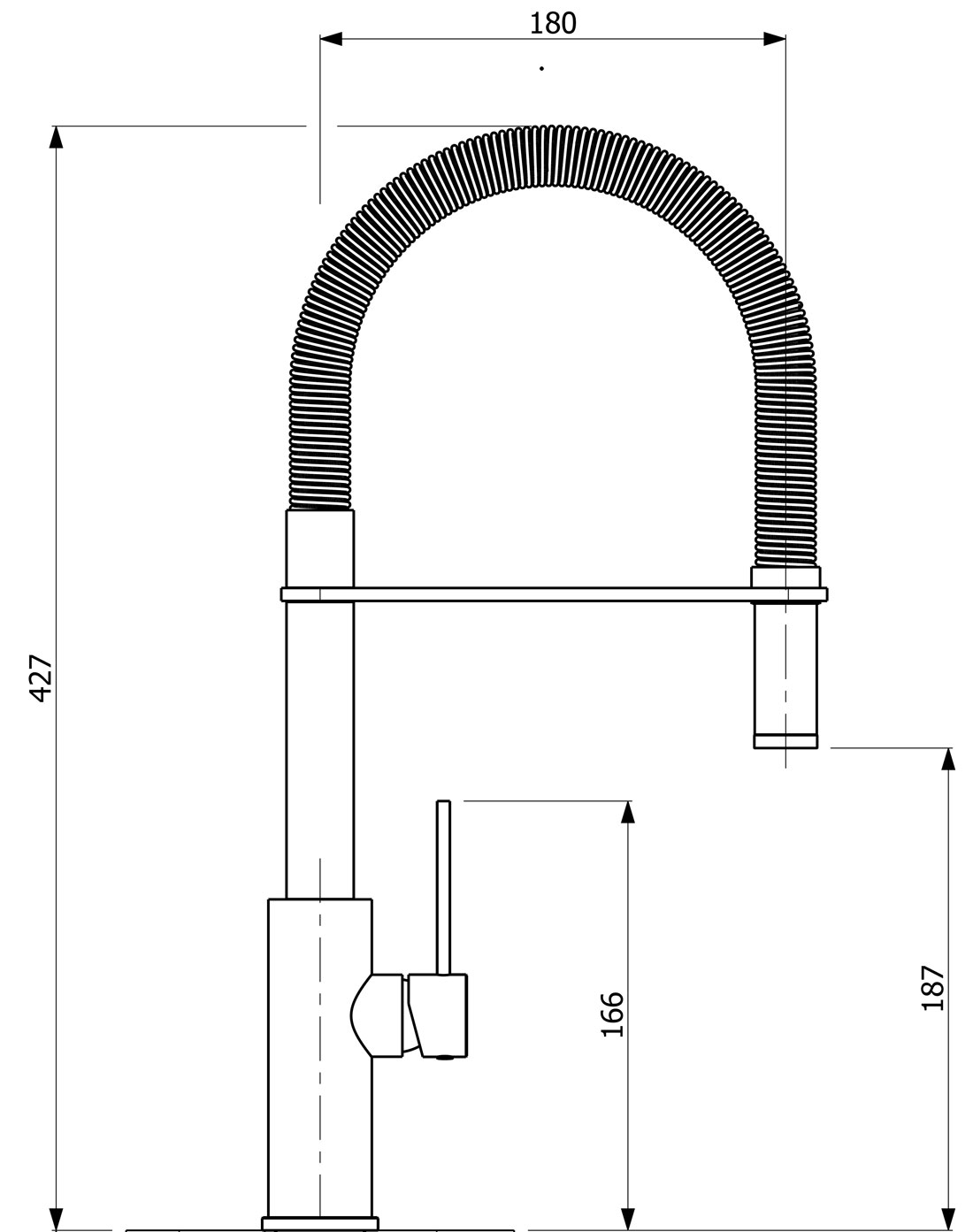 - dřezová stojánková baterie s vytahovací koncovkou s perlátorem, bez přepínače - pouze proud