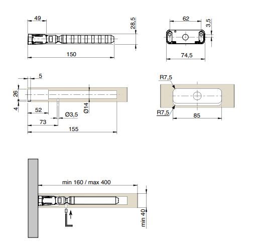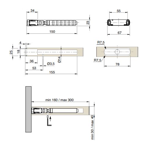 Určeno pro police o minimální tloušťce 25 mm, 25 - 30 mm a 40 mm.
