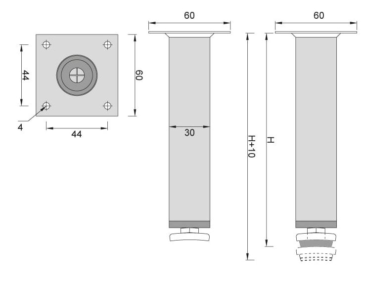 Díky regulovatelné výšce 10 mm umožňuje snadné dorovnání nerovností podlahy a zajišťuje perfektní stabilitu nábytku.