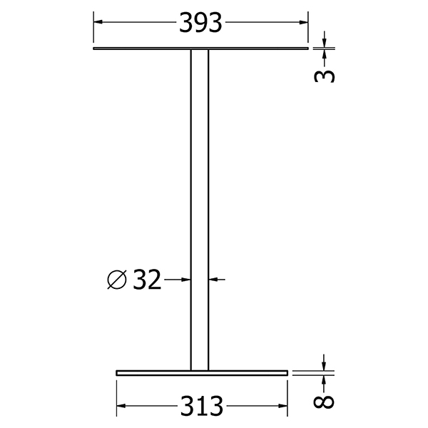 - Rozměr stolové desky 393 x 393 x 3 mm