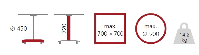 - Maximální rozměry hranaté stolové desky: 700 x 700 x 18 mm