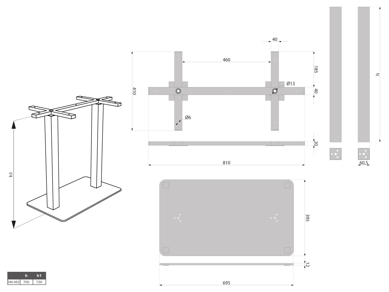Stolová noha centrální ECO 440 dvojitá černá 700 x 400 mm / výška 730 mm