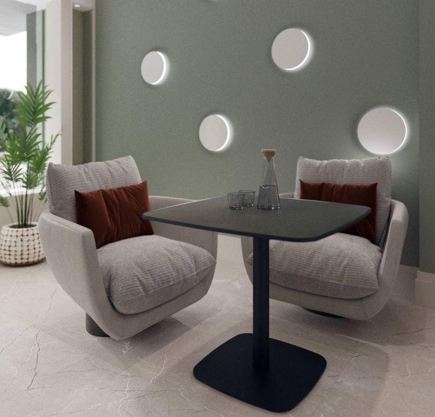 Centrální stolová podnož KAIRO přináší moderní variaci hranatého jídelního stolu.