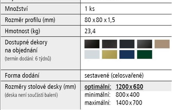 - Optimální rozměr stolové desky 1200 x 680 x 36 mm