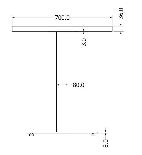 - Optimální rozměr stolové desky 800 x 800 x 36 mm