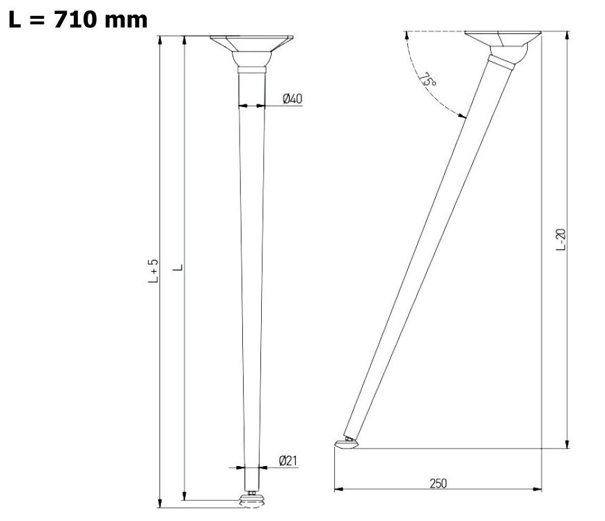 Výška: 710 mm ( s možností regulace výšky + 5 mm)
