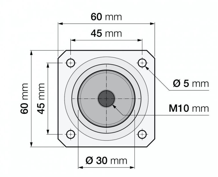 Ve spodní části je závit M10, do kterého můžete volitelně namontovat výškově nastavitelné šrouby nebo jednoduše nalepit filcové podložky pro ochranu podlahy.