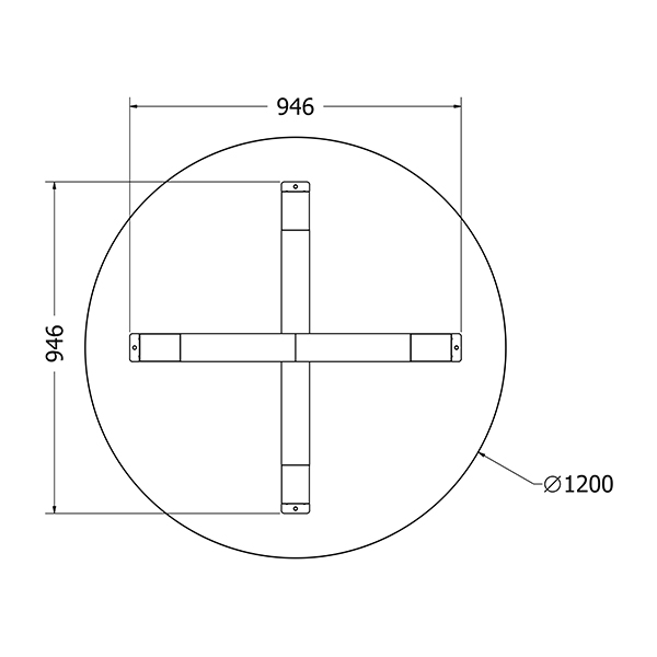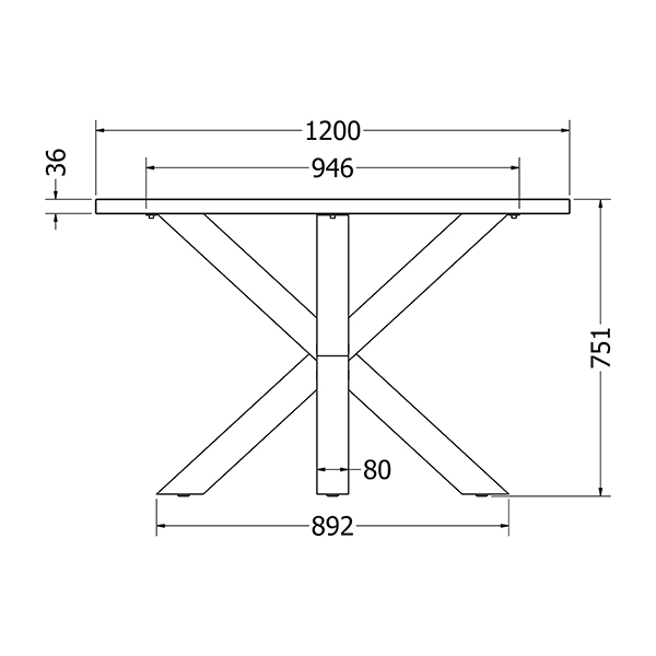 - Optimální rozměr stolové desky průměr 1200 x 36 mm