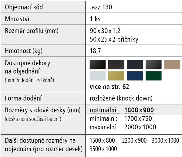 - Optimální rozměr stolové desky 1800 x 900 x 36 mm