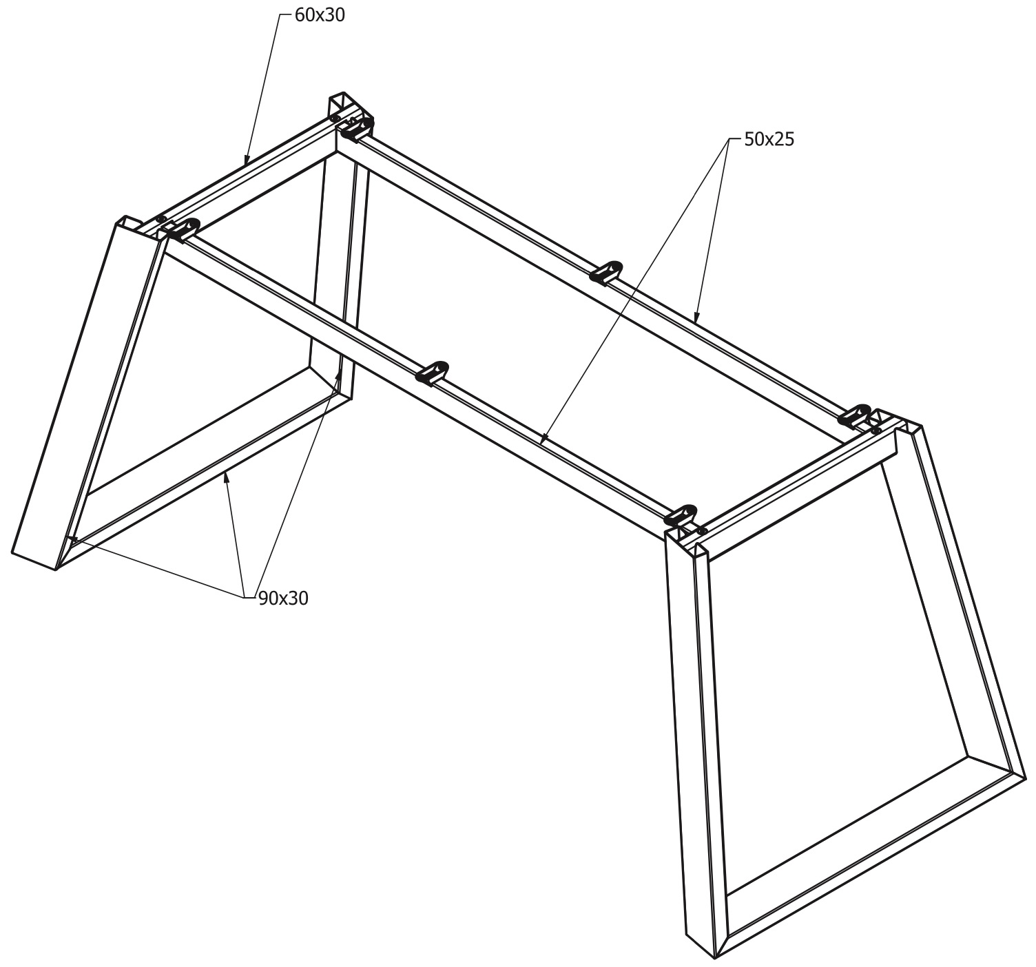 - Rozměr profilu: 90 x 30 x 1,2 mm, 50 x 25 x 2 mm příčníky