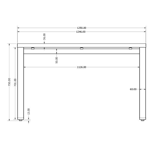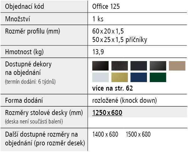 - Optimální rozměr stolové desky 1250 x 680 x 36 mm