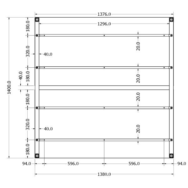 - Rozměr profilu: 40 x 40 x 2 mm; 40 x 20 x 2 mm příčníky