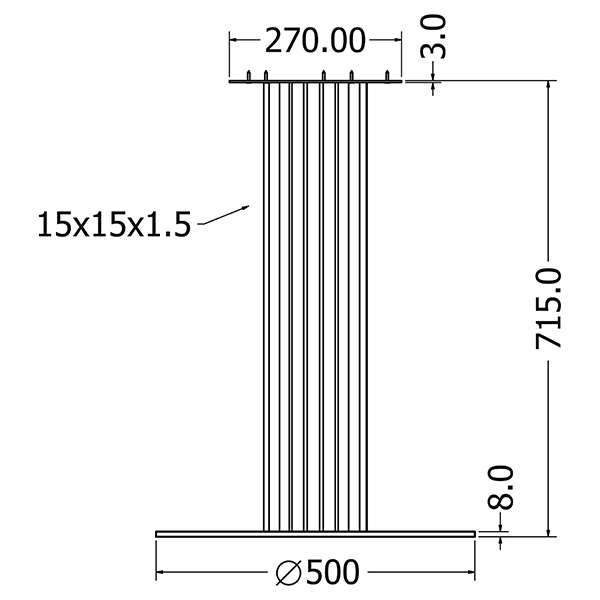 - Minimální rozměry stolové desky: průměr 500 x 36 mm