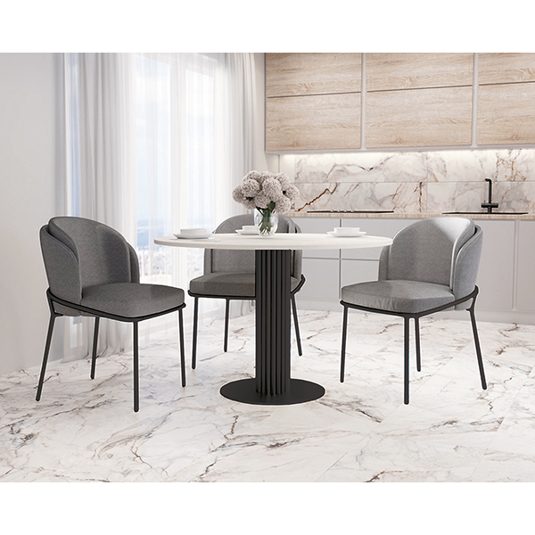Centrální stolová podnož Elektra přináší moderní variaci kulatého jídelního stolu.
