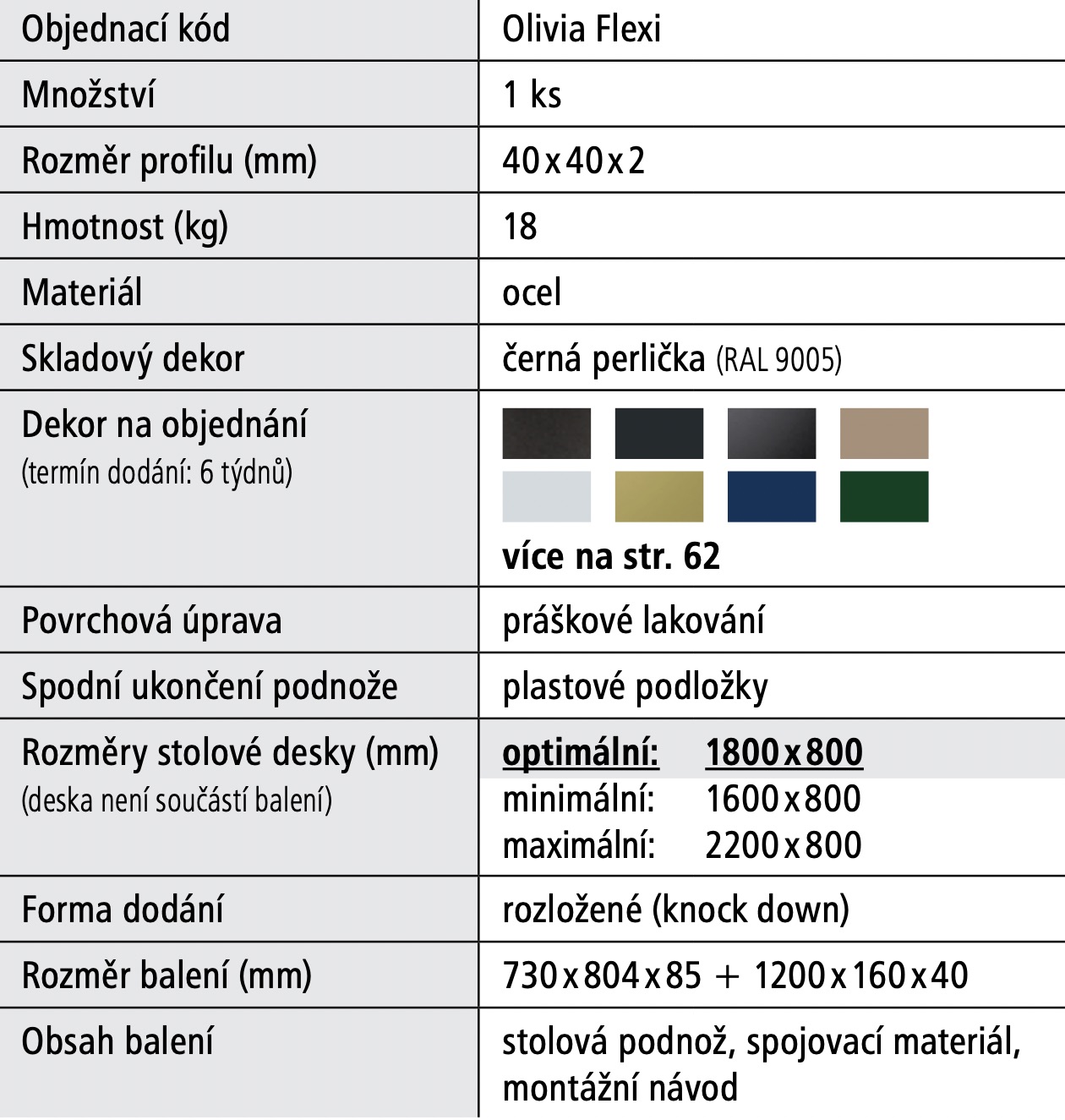 - Optimální rozměr stolové desky 1800 x 800 x 18 mm