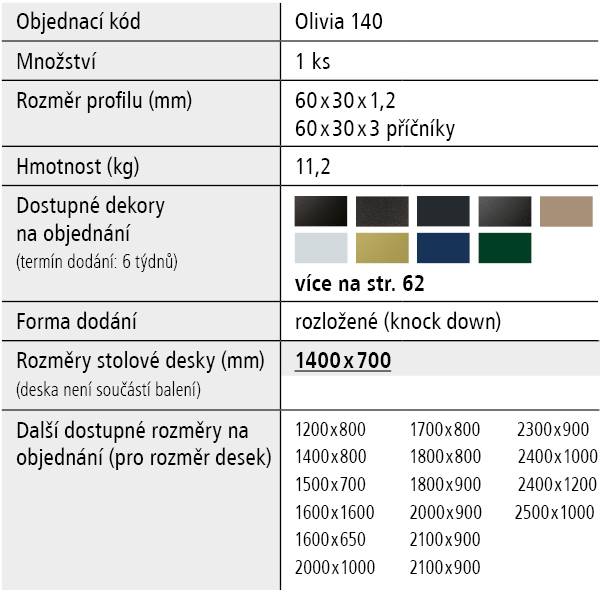 - Optimální rozměr stolové desky 1400 x 700 mm