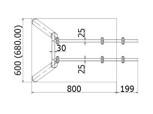- Rozměr profilu: průměr 60 x 1,2 mm, 50 x 25 x 1,5 mm příčníky
