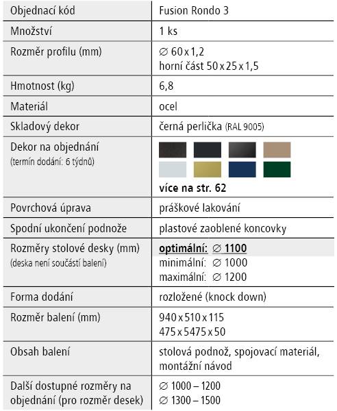 - Optimální rozměr stolové desky průměr 1100 x 36 mm