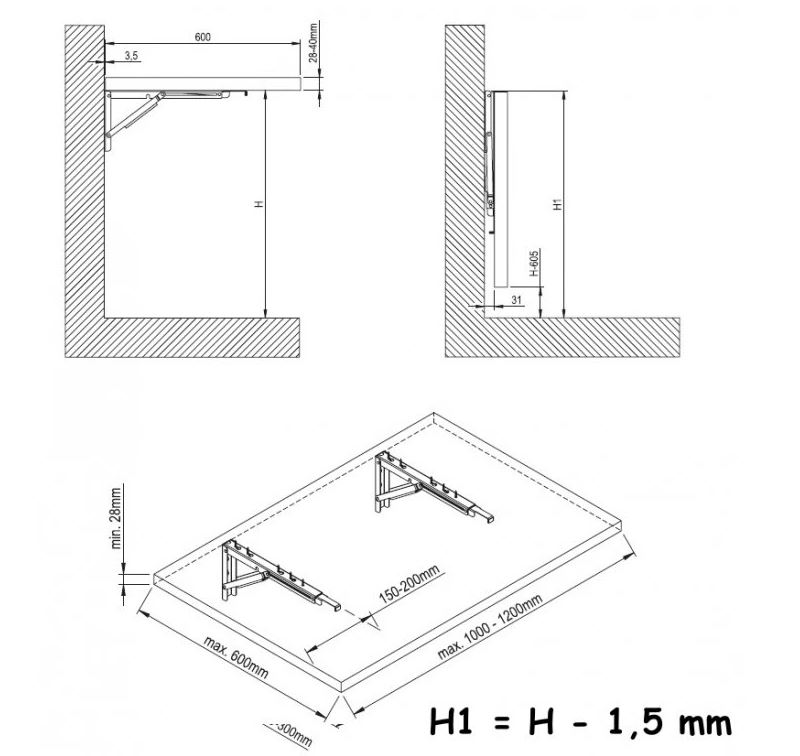 Praktická sklopná podpěra je určena pro výrobu sklopných stolů všude tam, kde není prostor pro stálé umístění stolové desky.