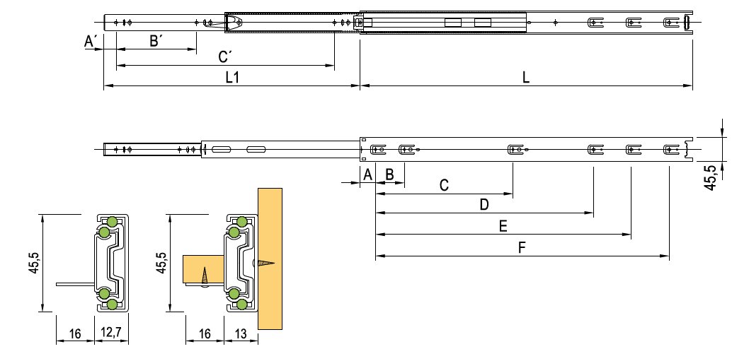 STRONG plnovýsuv kuličkový s podpěrou a bez dotlumení