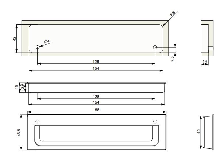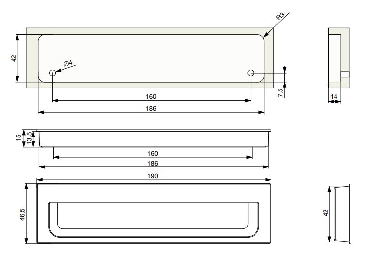 Pro úchytku je nutné vyvrtat zahloubený otvor do čelní strany a úchytku připevnit přišroubováním zezadu.