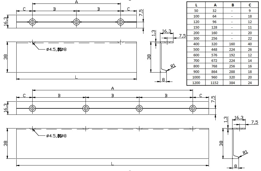 Tloušťka úchytky: 1,3 mm