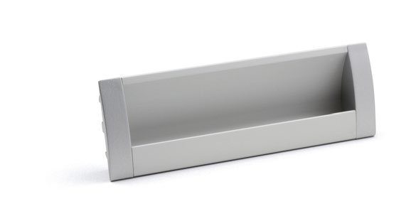 Zápustná kovová nábytková úchytka je ideální volbou pro posuvné dveře.