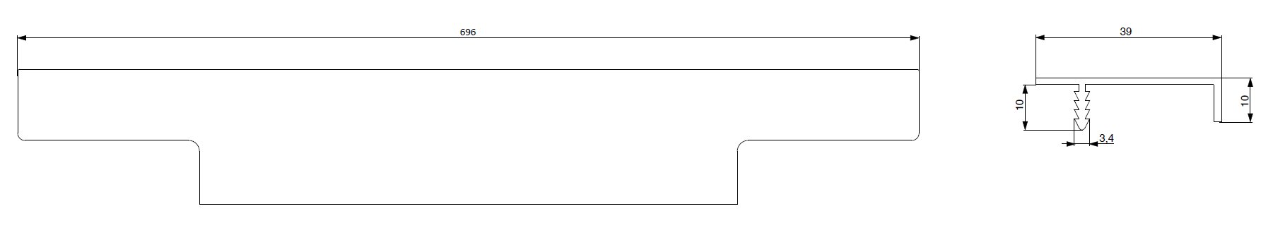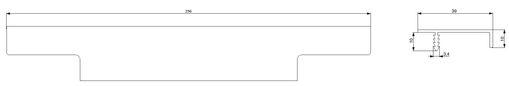 - úchytkový narážecí profil do kuchyňských dvířek s trnem pro zaražení do drážky v hraně dveří