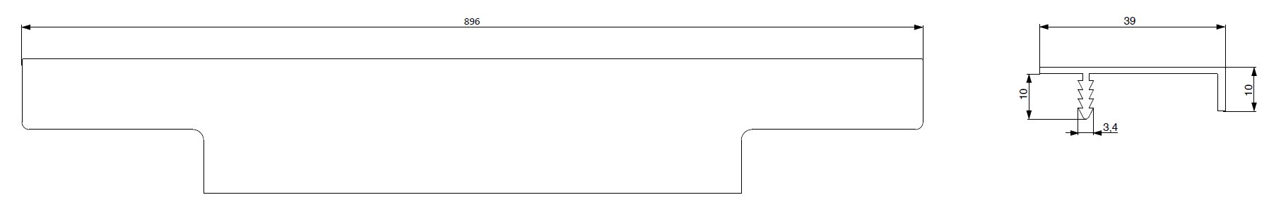 - úchytkový narážecí profil do kuchyňských dvířek s trnem pro zaražení do drážky v hraně dveří