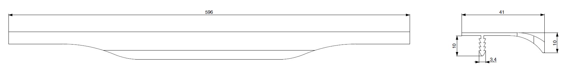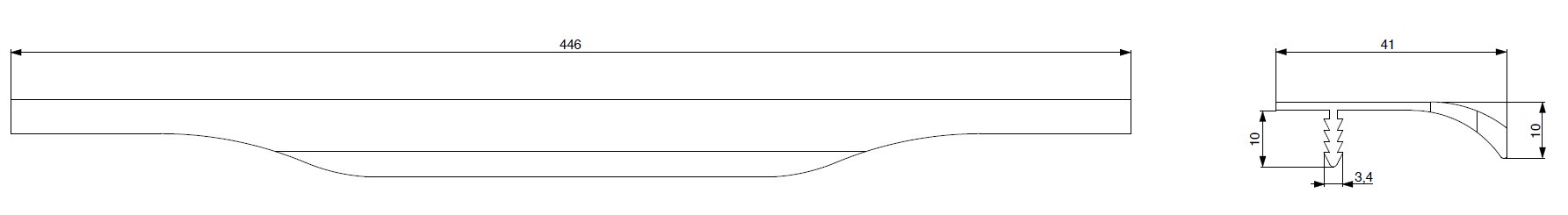 - úchytkový narážecí profil do kuchyňských dvířek s trnem pro zaražení do drážky v hraně dveří