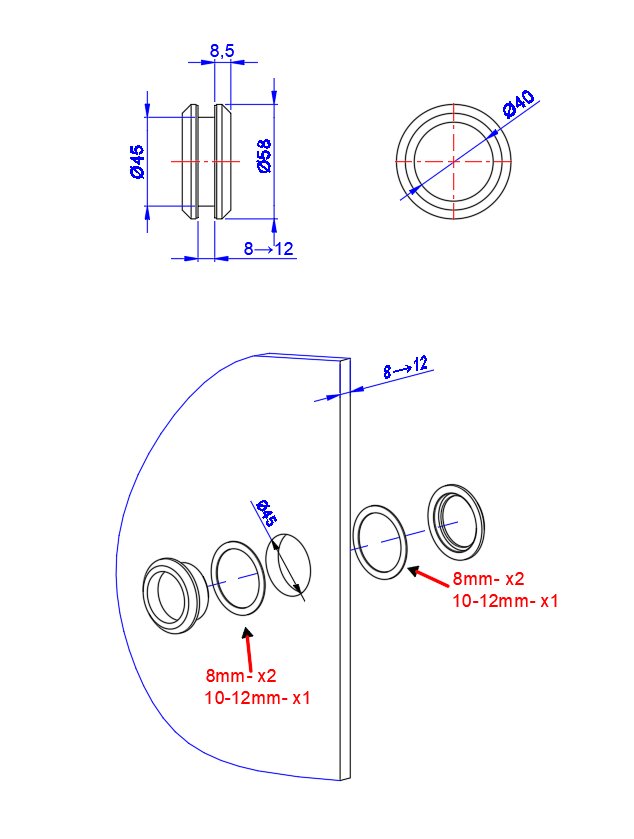 - úchytka má závit a po stažení je vhodná pro sklo o síle 8 - 12 mm