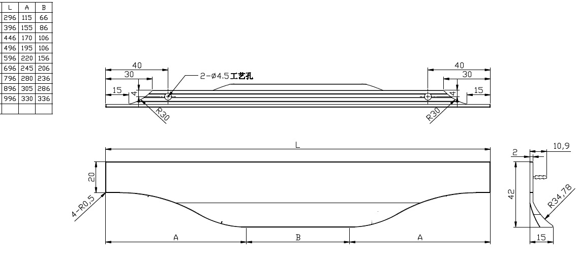 146 mm, 196 mm, 296 mm, 396 mm, 446 mm, 496 mm, 596 mm, 696 mm, 796 mm, 896 mm, 996 mm