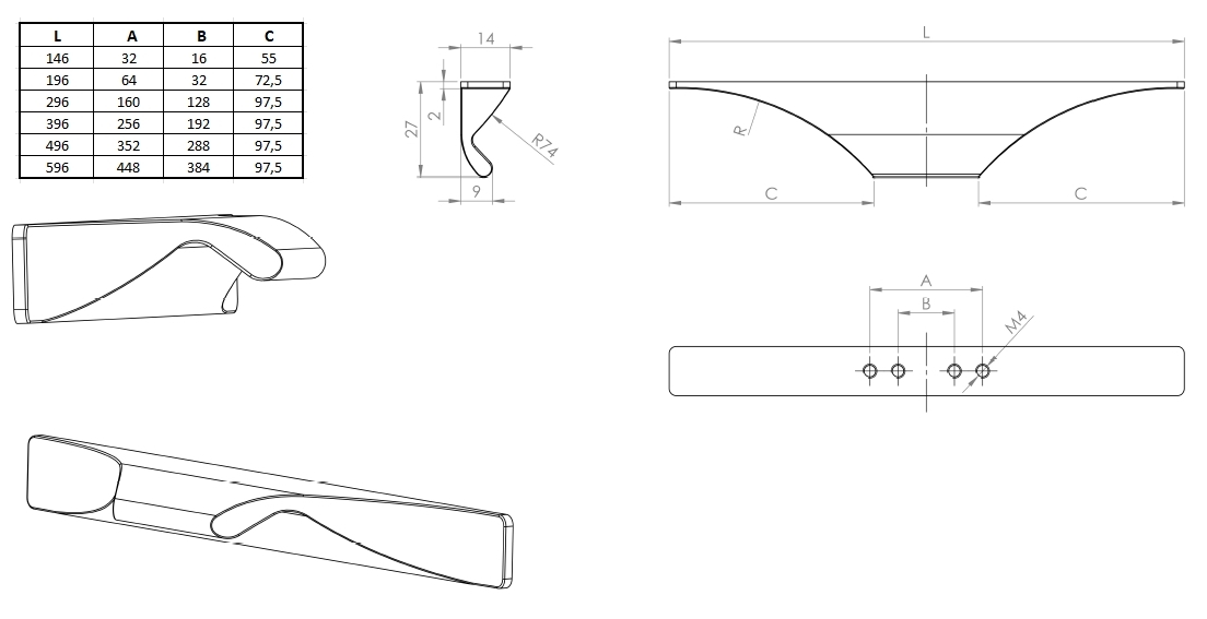 Tloušťka úchytky: 2 mm