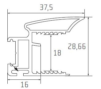 - úchytková lišta S11N je hliníkový úchytkový profil pro výrobu dveří z materiálu o síle 18 mm a skla o síle 4 mm