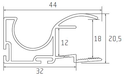 - úchytková lišta S12 je hliníkový úchytkový profil pro výrobu dveří z materiálu o síle 18 mm