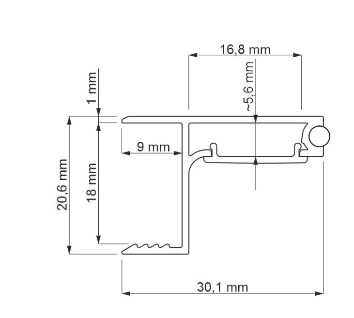 Profil Skyline je hliníkový profil pro spodní část skříňky.