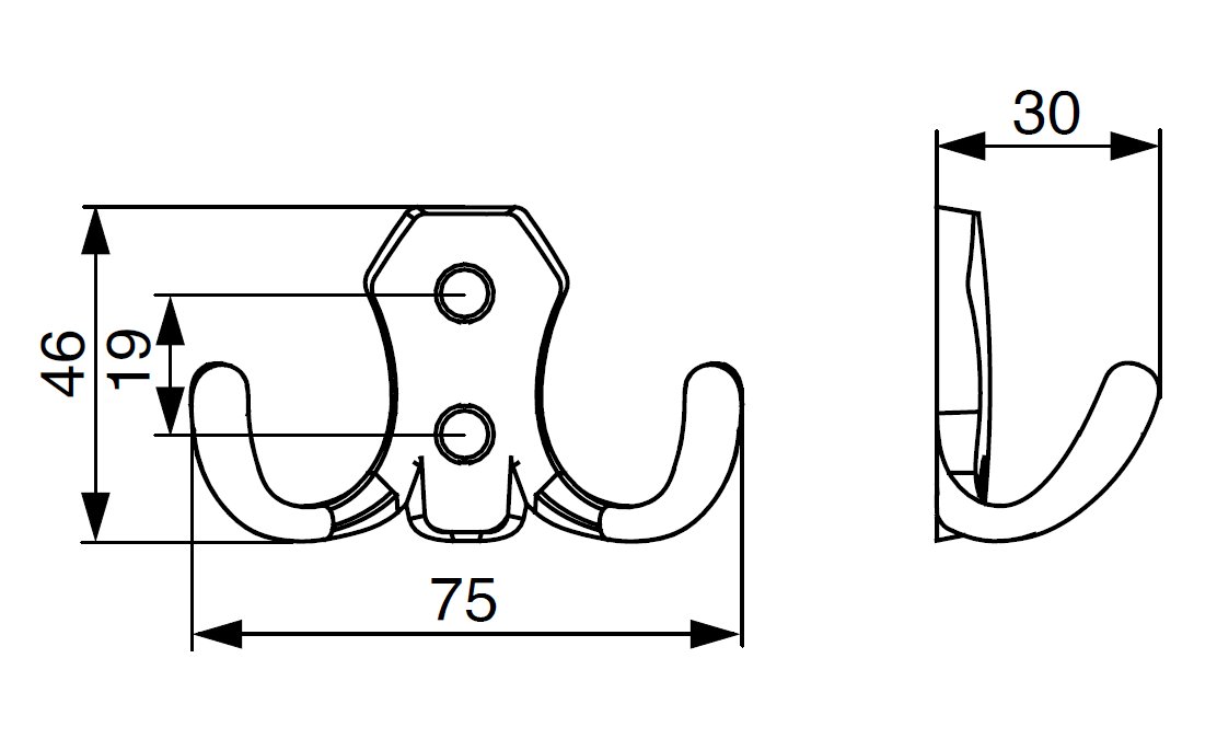 Věšák Davos je druhem věšáku, který spojuje funkčnost a styl. Věšák je vyroben z kovu a jeho součástí jsou 2 háčky.